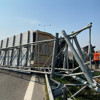 Dorsesi açılan kamyon yol üzerindeki yönlendirici tabelalara büyük bir gürültü ile çarptı. Çarpmanın etkisi ile yönlendirici tabelalar yerinden sökülerek, karşı şeride geçen kamyon ile birlikte devrildi.