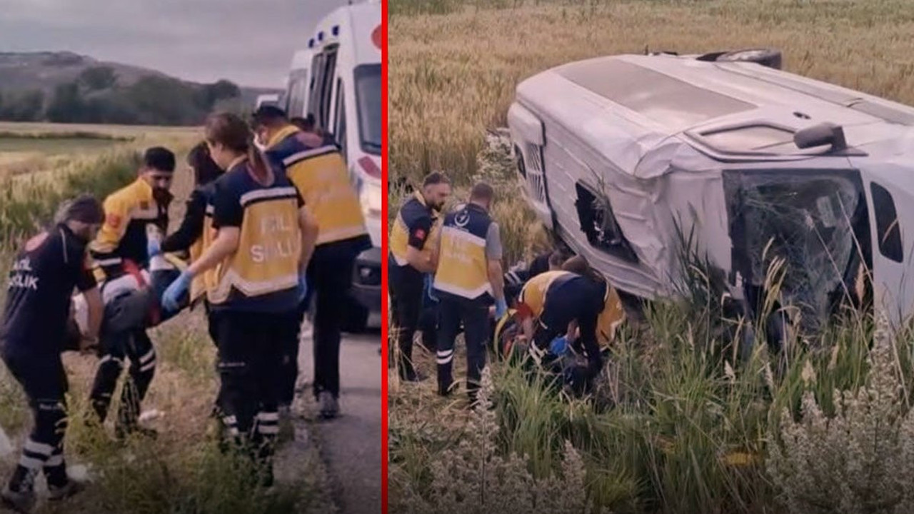 Çorum'un Alaca ilçesinde düğünden dönen vatandaşların bulunduğu minibüsün devrilmesi neticesinde meydana gelen kazada 2'si çocuk 17 kişi yaralandı.