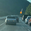 O anlar yoldan geçen başka bir otomobildeki kişi tarafından cep telefonuyla görüntülendi. Görüntülerin sosyal medyada paylaşılmasının ardından jandarma ekipleri, E.Ö.'yü gözaltına aldı. E.Ö.'ye 2 bin 864 lira idari para cezası kesilirken, hakkında genel güvenliği tehlikeye düşürmek suçundan da adli işlem başlatıldı.