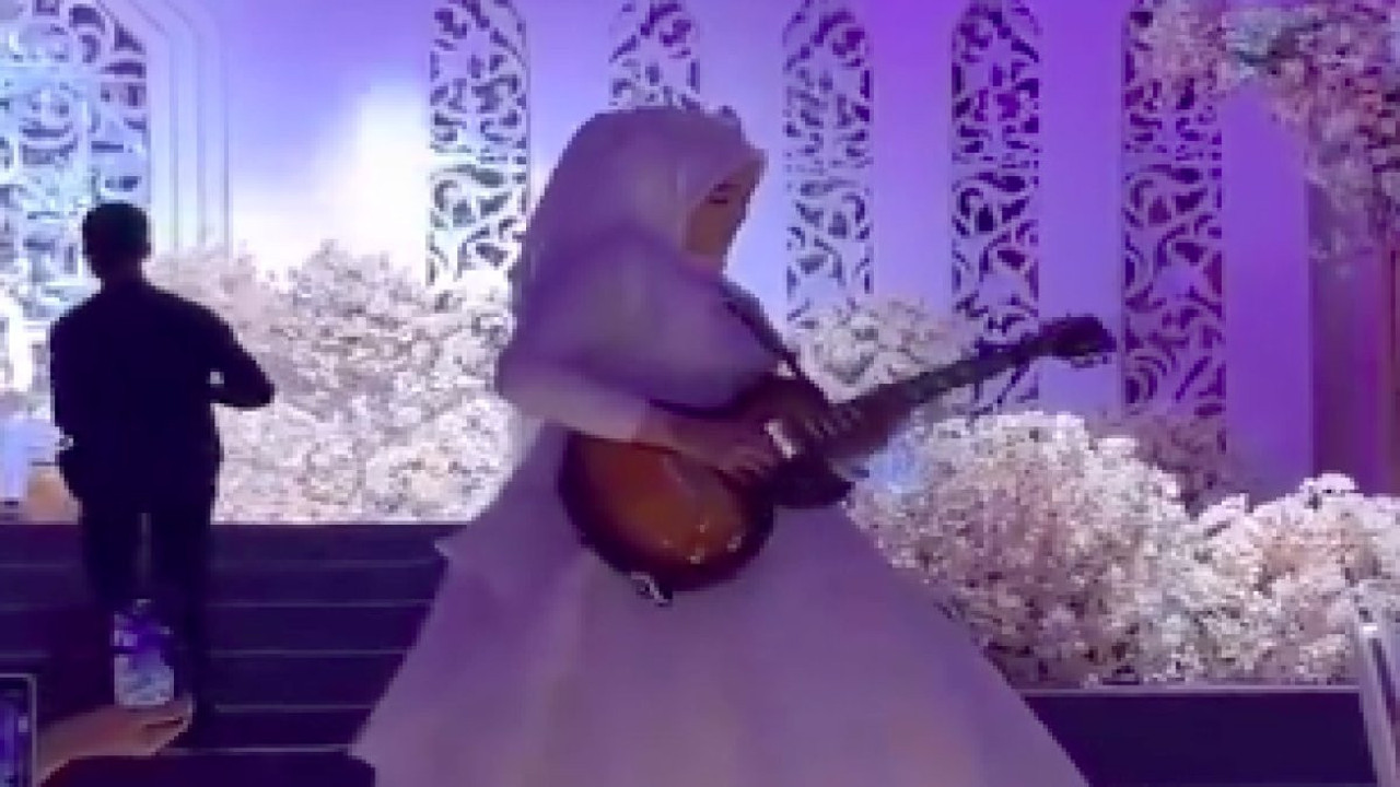 Bir gelin, düğünde açılışı elektro gitar çalarak yaptı. Konuklardan birinin çekip paylaştığı video kısa sürede viral oldu.