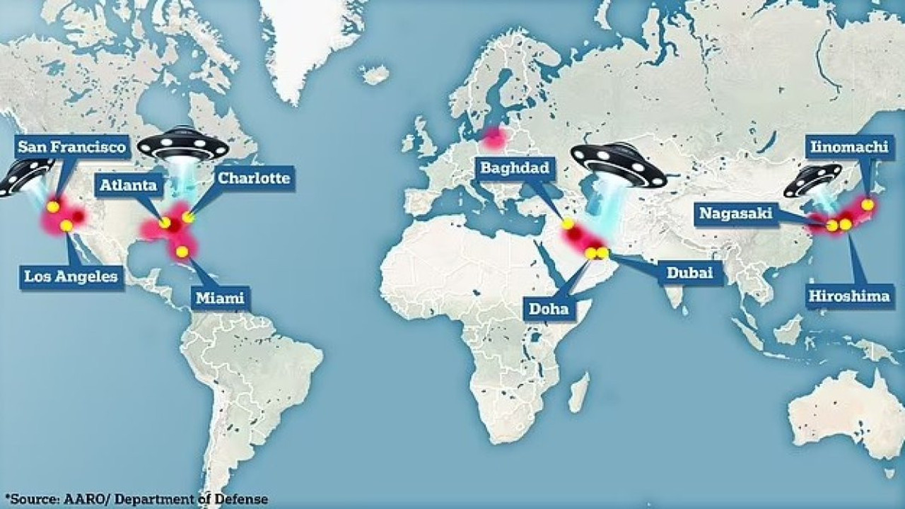Pentogon'nun UFO haritası, ABD'li bir yetkilinin “dünyanın her yerinde'”yüzlerce gizemli nesnenin görüldüğünü açıklamasından kısa bir süre sonra ortaya çıktı.
