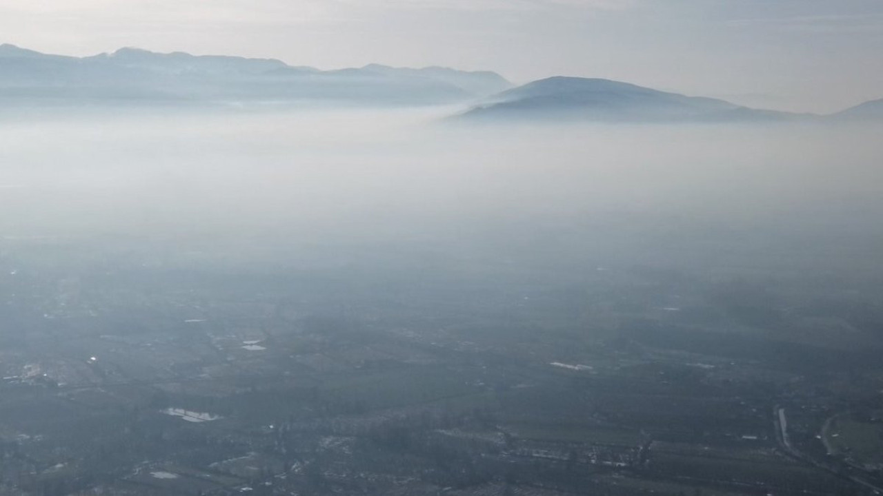 O anlar dron ile görüntülenirken, sis bulutunun akşam saatlerinde kalkması bekleniyor.