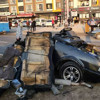 Düzce''de makas atan otomobil önce kamyonete, ardından da refüje çarptı. Otomobil ikiye bölünürken, sürücüsü yaralandı.