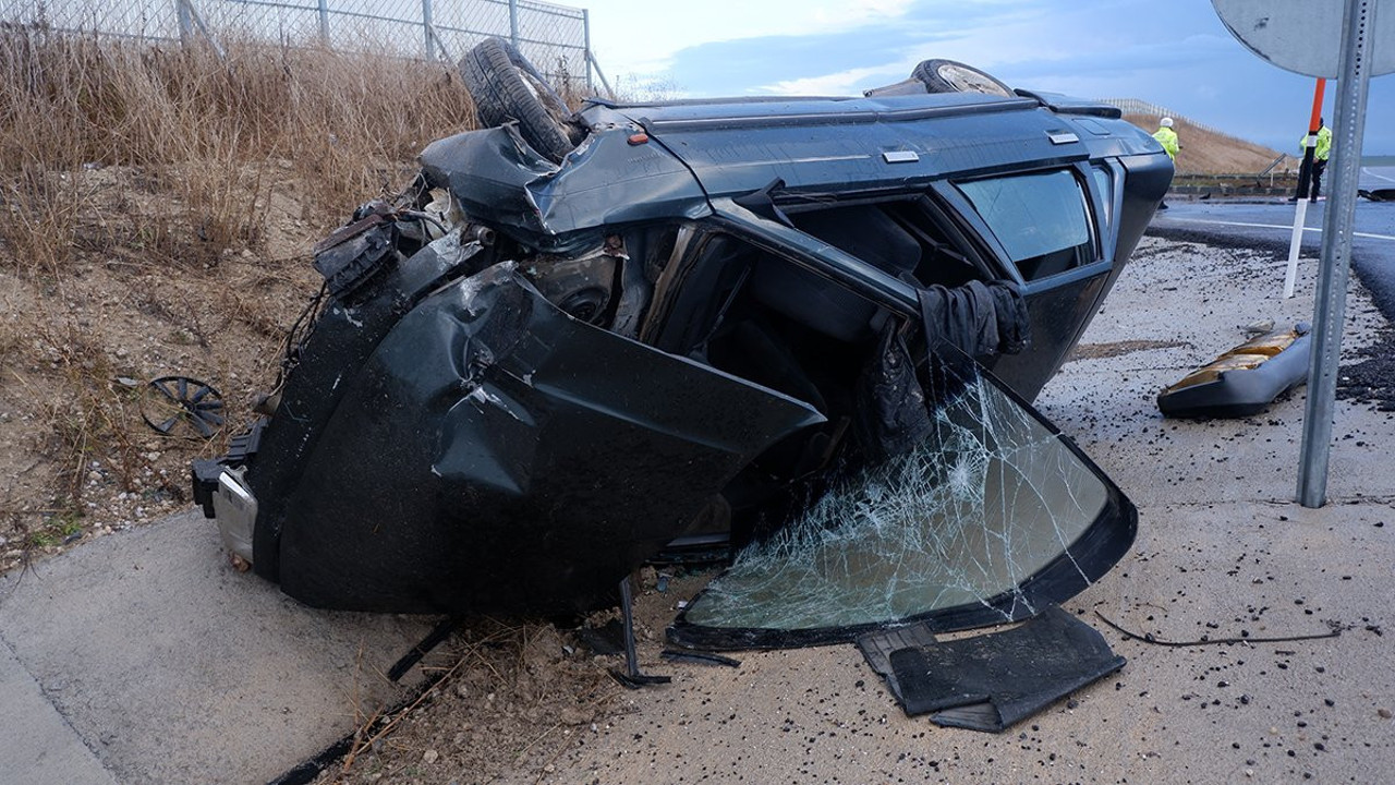 Kırklareli'nden Edirne'ye seyir halinde olan Oğuzhan Ç.'nin kullandığı 39 NF 886 plakalı otomobil sürücüsü direksiyon hakimiyetini kaybetti. Oğulpaşa Kavşağı'nda taşlara çarpıp ardından yan yattı.