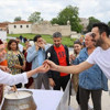 Selimiye Meydanı'nda düzenlenen ikramda şekerlemeci Arif Meriç tarafından hazırlanan coğrafi işaretli Deva-i misk helvası vatandaşlara dağıtıldı.