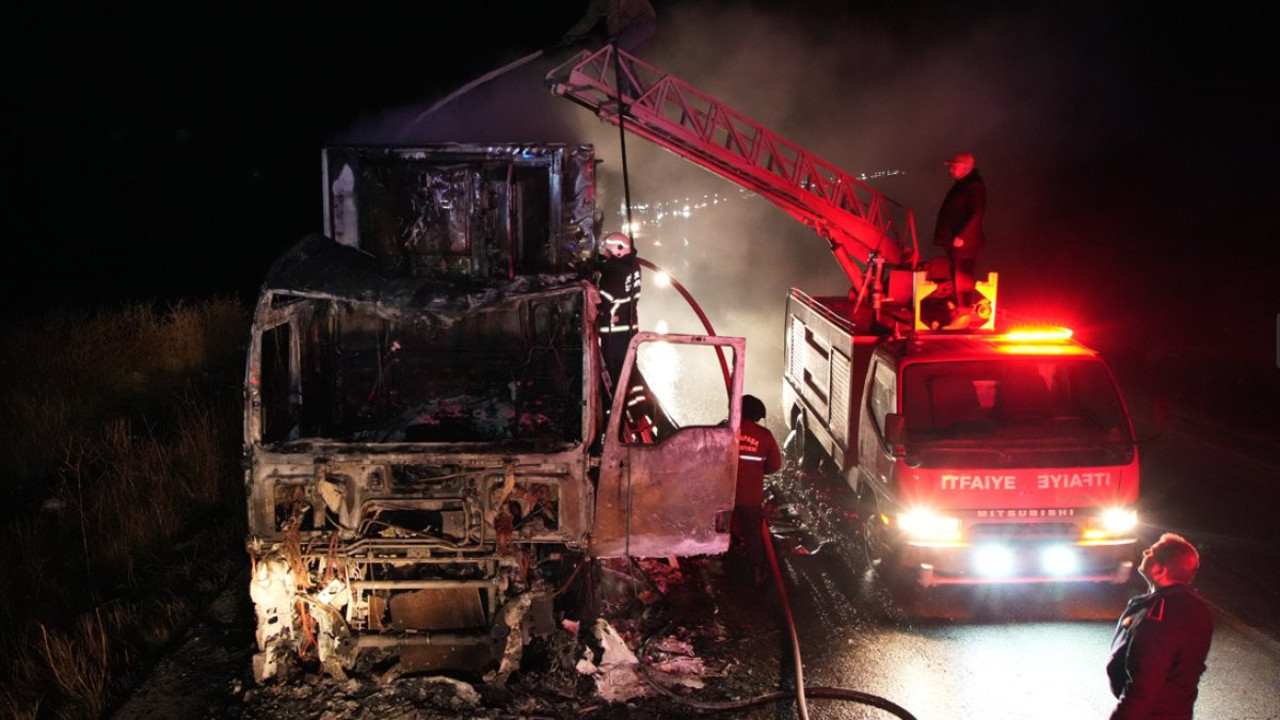 Türkiye’den aldığı domates yükünü Ukrayna’ya götürmek için yola çıkan, sürücü Viktor Berezhansky kontrolündeki Ukrayna plakalı tırda, yol kenarında beklerken dorseye bağlantılı olduğu öğrenilen soğutucu motorundan yangın çıktı.