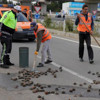 Bu anlarda yoldan geçen araç olmamasıyla olası kaza önlendi. İhbar üzerine bölgeye polis ve Karayolları ekipleri sevk edildi. Bir süre tek şeritten sağlanan ulaşım, Karayolları ekiplerinin savrulan somunları yoldan toplamasının ardından normale döndü.