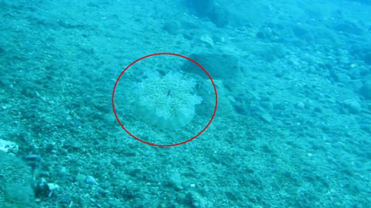 Akdeniz kıyılarında sıkça karşılaşılan bu türlerden biri de istilacı denizanası. Özellikle ekim-kasım ayları arasında göç ederken yer değiştiren ve kıyıya yakın noktalarda deniz tabanında görülen bu canlı, AÜ Su Ürünleri Fakültesi Öğretim Üyesi Prof. Dr. Mehmet Gökoğlu, tarafından görüntülendi.