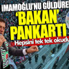 “Hani güzel bir şarkı vardı, ‘Ankara'da abim geldi’ diye. Ben de severim o şarkıyı. Şimdi bu şarkıyı bu sene değiştirdik; ‘Ankara'dan kabine geldi.’ Doğru mu? Bütün kabine burada. Geziyorlar mı? Ekrem İmamoğlu'na karşı çalışıyorlar mı? Biri Pendik'te, biri Sancaktepe'de, birisi Fatih'te, öbürü Bahçelievler'de dolaşıyorlar mı? Hatta şarkı söyleyip, eğlenenler de var gördünüz mü? Bakıyorsun İçişleri Bakanı; bu seçimin güvenliğinden sorumlu. Adalet Bakanı; bu süreçteki olaylardan sorumlu. Sağlık bakanı; sağlıkla ilgili süreçlerden sorumlu. Bakanlıkları boşaltmışlar, koşa koşa gelmişler ve burada, Ekrem İmamoğlu'nun karşısında birleşmişler. Şimdi bunu birkaç tane anlamı var: Bir; adaylarına güvenmiyorlar demek ki. Doğru mu? E o zaman yazık değil mi arkadaşınıza? Yani bakan arkadaşınızı, mahcup duruma düşürmüyor musunuz? İki; bu kadar önemli işleri var Türkiye Cumhuriyeti devletimizin. Her bakanlığın işlerini sayacak değilim; ekonomi, maliye, her konuda… Git enflasyonla uğraş. Git bu şehrin, bu ülkenin seçim güvenliğiyle uğraş. Git sağlıkla ilgili hastanelerde yaşanan sorunlarla ilgilen. Emeklinin maaşıyla ilgilen.”