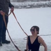 Güvenç, daha sonra atlı kızakçı Dural Daşdemir'in yardımıyla sudan çıktı.