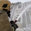 Hava sıcaklığının eksi 37 derecede seyrettiği bölgede yürütülen söndürme çalışmalarında binanın dış cephesi tamamen dondu, çatıda ve pencere kenarlarında buz sarkıtları oluştu.