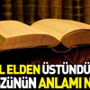 El elden üstündür atasözüyle asıl anlatılmak istenen şey; Bir kişinin kendini en güçlü sandığı durumlarda aslında sanılanın tam aksi olduğu, her şeyin daha iyisinin bulunabileceği anlamında kullanılan bir atasözüdür.