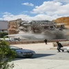 Binanın belirli noktalarına korna sesiyle destek verildi. İş makinelerinin müdahalesi ve ses dalgalarının etkisiyle 5 katlı bina yıkıldı.