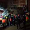 Elazığ''da ilk depremin ardından boşaltılan ve ikinci depremde çöken binanın enkazında çalışmalar devam ederken, doğalgaz sızıntısı meydana geldi.