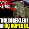 ANKA''nın haberine göre; Yerdeki tellere temas eden 3 köpek, elektrik akımına kapılarak yaşamını yitirdi. Ölen Dost isimli köpeğin sahibi Mehmet Kaya Gökçe, “Burada benim çiftlik hayvanlarım da takılıp ölebilirdi. Ben de takılıp ölebilirdim. İnsan hayatı bu kadar ucuz” diyerek duruma tepki gösterdi.