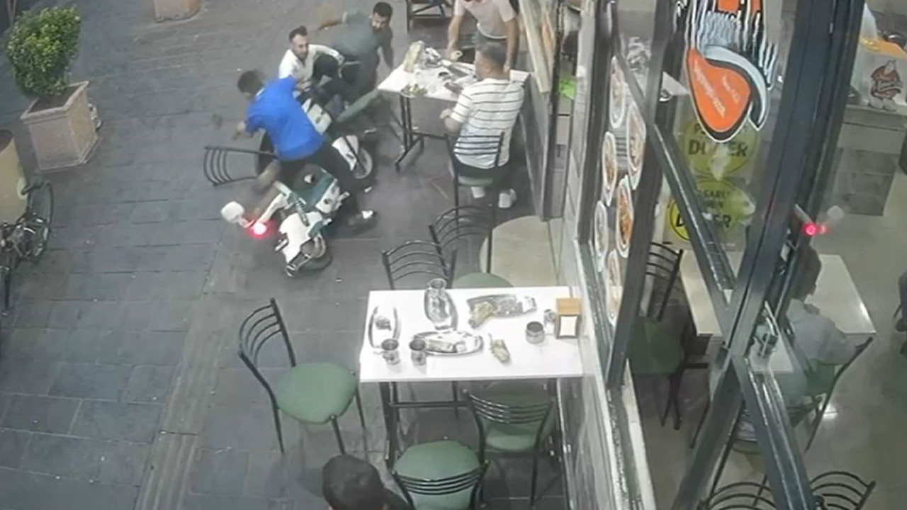 Güvenlik kamerasına yansıyan görüntülerde, elektrikli bisikletlinin lokantada yemek yiyenlerin arasına daldığı, yemek yiyen vatandaşların da elektrikli bisikletin çarpması sonucu yere düştüğü görüldü.