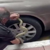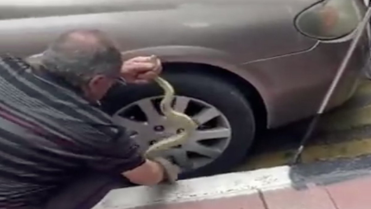 Bir vatandaşın, arabanın jantına saklanan yılanı çıplak elleriyle ve bir elinde sigara tutarak çıkarması, cesaret ve becerisiyle takdir topladı. O anları cep telefonlarıyla kaydeden diğer vatandaşlar, vatandaşın bu hareketini sevinç ve takdir dolu sözlerle kutladı.