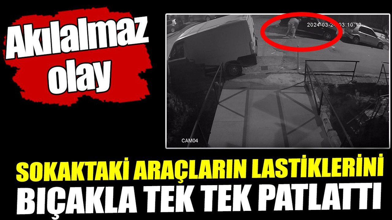 SOKAKTAKİ ARAÇLARIN LASTİKLERİNİ TEK TEK PATLATTI