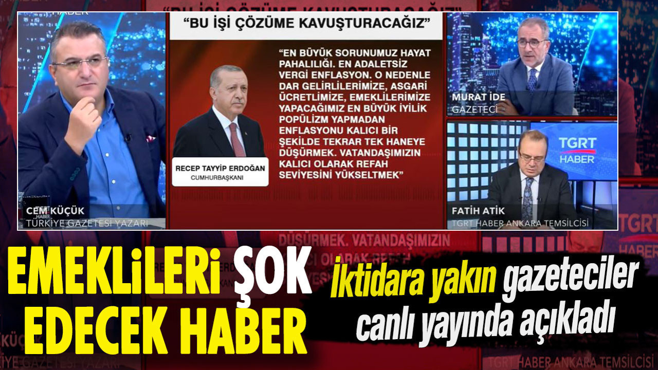 Özellikle kök maaşı 10 bin TL'nin altında olan yaklaşık 4 milyon emeklinin alacakları zam oranı büyük merak konusu oldu. İktidara yakın gazeteci Cem Küçük'ün sunduğu canlı yayında, TGRT Ankara temsilcisi Fatih Atik, konuyla ilgili edindiği kulis bilgilerini paylaştı.