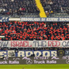UEFA ve FIFA'ya çağrıda bulunan taraftarlar, üzerinde "Show Israel The Red Card (İsrail'e Kırmızı Kart Göster)" ifadesinin bulunduğu pankart açtı.