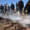 Burada yağmur yağması için hep birlikte dua eden mahalleli daha sonra kesilen 10 koyunun etinden pişirilen yemeklerden yedi.