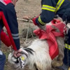 Ekiplerce kurtarılan keçi ağıla götürüldü.