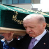 Erdoğan, kılınan cenaze namazının ardından Kahraman'ın tabutuna omuz verdi.