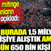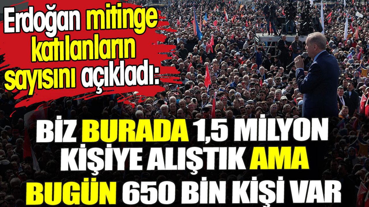 Erdoğan mitinge katılanların sayısını 650 bin olarak duyurdu. Cumhurbaşkanı Erdoğan "Biz burada 1,5 milyon kişiye alıştık ama bugün 650 bin kişi var" dedi.