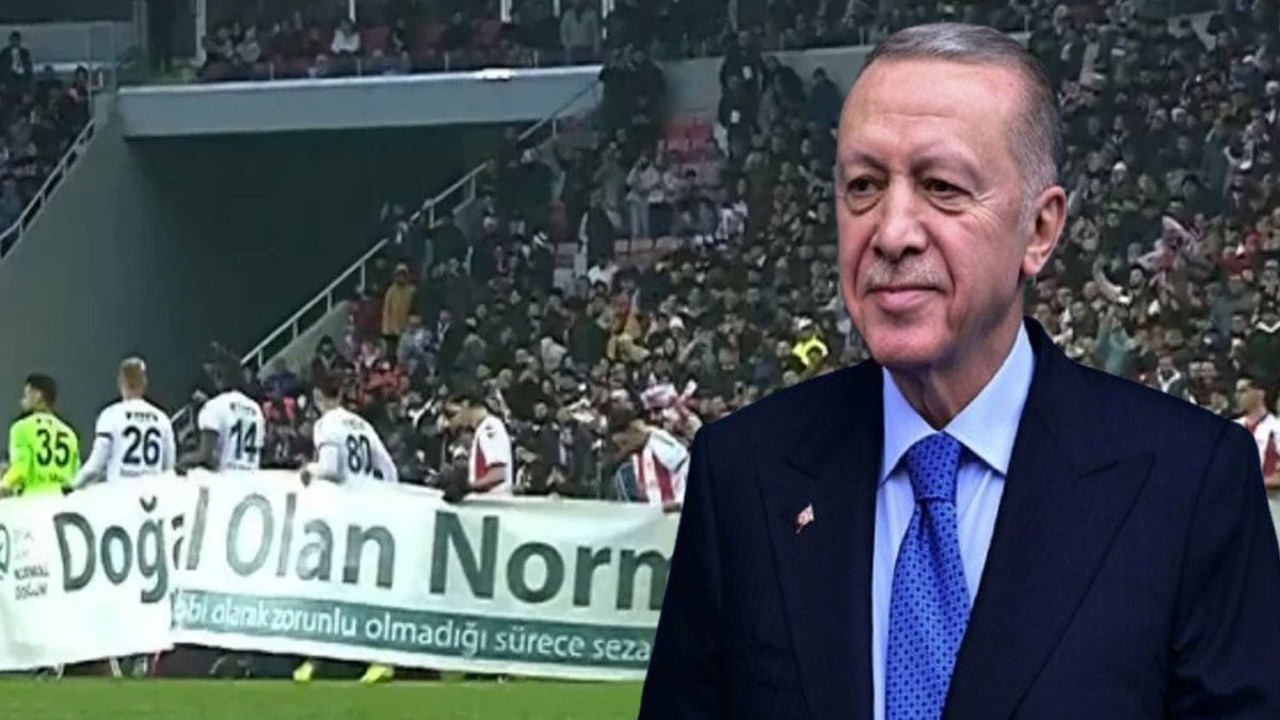 "Bir futbol kulübümüz Sağlık Bakanlığımızın yürüttüğü bir farkındalık kampanyasına destek olmak için sahaya bir pankartla çıktı. Pankartta hakaret yoktu, eleştiri yoktu, kimseye bir saygısızlık yoktu. Onların iddia ettikleri gibi kadınları rencide edecek hiçbir durum yoktu" diyen Erdoğan, şöyle konuştu: