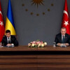 Cumhurbaşkanı Erdoğan: "Sayın Zelenskiyi Türkiye'de ağırlamaktan mutluluk duyuyorum. Bugün gerek ikili, gerekse heyetler arası, ardından dar kapsamlı yaptığımız görüşmelerle gerçekten Türkiye Ukrayna arasında önemli adımları az önce attığımız imza ile gerçekleştirdik.Türkiye ve Ukrayna arasında önemli adımlar atıyoruz. Salgın başlamadan hemen önce Şubat ayında Kiev'i ziyaret etmiştim. Arayı fazla açmadan sayın Zelenkiyle bir araya gelmemiz ilişkilerimizi güçlendirme yönündeki güçlü irademizin bir tezahürüdür.İmzalanan metinler de bu irademizin pek çok başlıkta somut projelerle vücut bulmasını sağlayacaktır. Bugün değerli dostumla yapılan görüşmelerde ikili ilişkilerimizdeki konuları etraflıca gündeme aldık. İşbirliğimiz savunma sanayinden, turizmden sağlık turizmine geniş yelpazede karşılıklı yarar temelinde derinleşiyor.Serbest ticaret anlaşması müzakerelerini süratle neticelendirme konusunda sayın Zelenki'yle hemfikiriz.