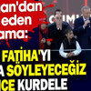 Keçiören'de düzenlenen Atatürk Cumhuriyet Kulesi Açılış Töreni'ne katılan Cumhurbaşkanı Recep Tayyip Erdoğan, açılış öncesinde ilginç bir olaya imza attı. Açılış töreni öncesinde dua eden imama, "Fatiha'yı sonra söyleyeceğiz önce kurdeleyi keselim" diyerek müdahalede bulundu.