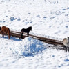 Karla kaplı bölgede sürü halinde gezen yılkı atları, güzel görüntüler oluşturdu.