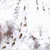 Bölgede doğa çekimleri yapan Fatih Civan ve Emre Ekinci'nin dron kamerasına takılan 11 yaban domuzu, karla kaplı arazide bir süre ilerleyip, daha sonra gözden kayboldu.