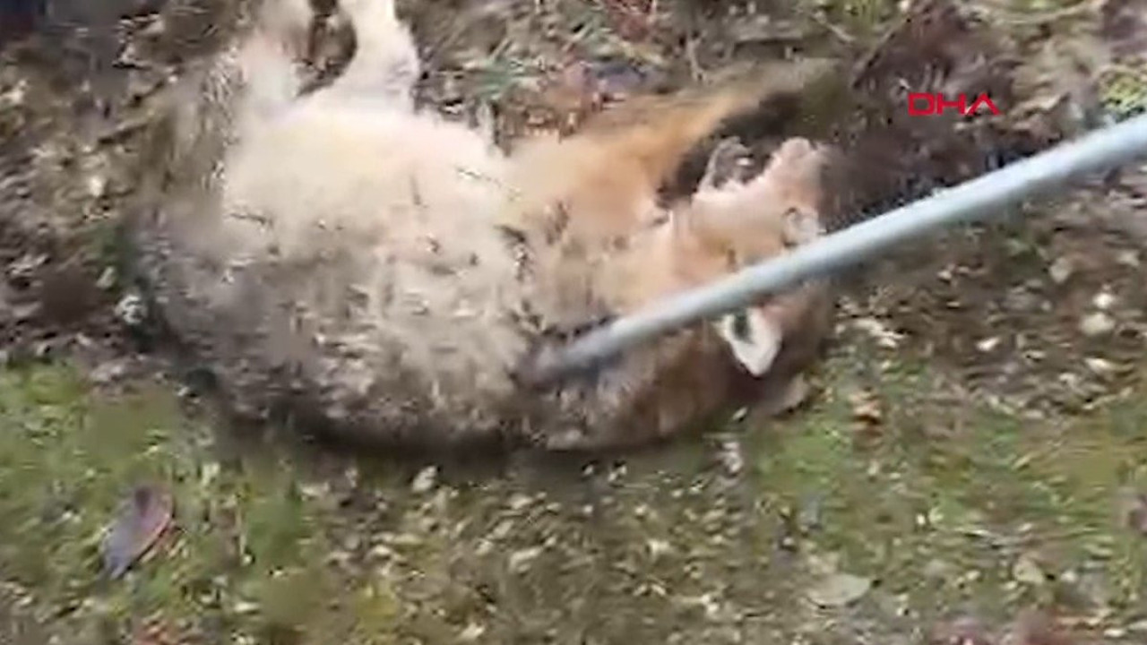 Yaralı kurdu başından halatla yakalayan ekipler, iğneyle uyuşturup şubeye götürdü. İki ayağını kullanamadığı belirlenen kurt, tedaviye alındı.