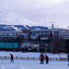Yüzeyi yaklaşık 35 santimetre buzla kaplanan havuz, paten yapmak isteyenlere farklı deneyimler sağlıyor.