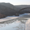 Nehir ile çayın kıyı kesimleri tamamen donarken, orta kısmının yüzeyinde de buzlanmalar oluştu.