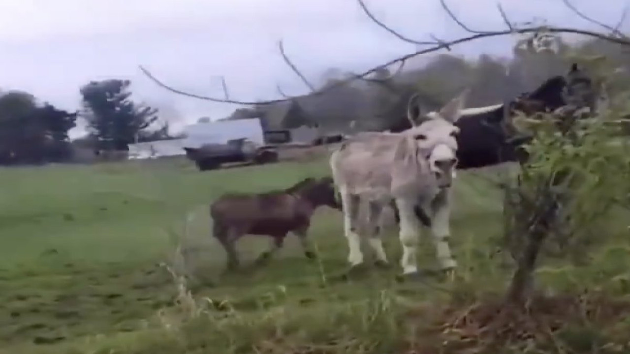 Bir çiftlikte çekilen ilginç bir video, sosyal medyada gülümsetti. Videoda, çiftlikteki köpeğin atlardan korktuğu anları gören eşeğin, anırarak güldüğü görülüyor. Atların koşuşturmasıyla tedirgin olan köpeğin tepkisi, yanındaki eşeği güldürdü. Eşeğin gülme sesleriyle karşılık vermesi, o anları izleyenleri de güldürdü.
