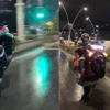 İnternet üzerinden satış yapan firmanın kuryesi olarak çalışan kişi, yağmur sonrası kayganlaşan yolda kaza riskine aldırış etmeden tek teker gösterisi yaptı.