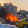 Sürücünün sağ şeride çekip, durmasının ardından araçtan bir anda alevler yükseldi.