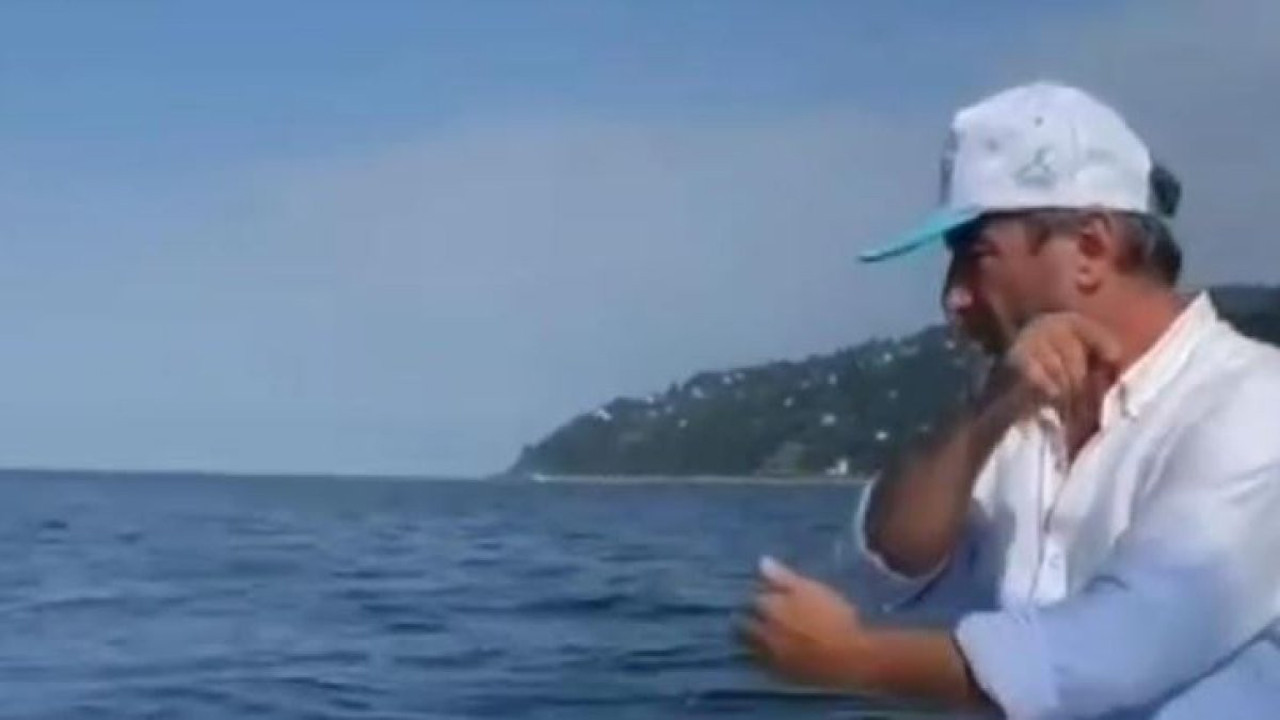 Kayıkta Dönmez’in yanında bulunan bir kişinin oltasına balık vurmasıyla birlikte, heyecan dolu anlar yaşandı. Dönmez o anları cep telefonuyla kayıt altına alırken, yanındaki kişi de balığı tekne almak için çekmeye başladı.