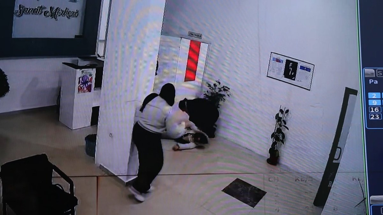 Canını kurtarmak için olay yerinden kaçan kadın, aynı sokaktaki bir binanın giriş katında bulunan bir işyerine sığınarak yardım istedi.