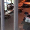 O.Ö., kaçmaya çalışan A.E.''yi tek eliyle tutarken, diğer eliyle darbetmeye devam etti.