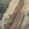 Kaydedilen görüntülerde, dik yamaçtan toprağın hızla aşağı doğru kaydığı ve etrafı toz bulutunun sardığı görülüyor.