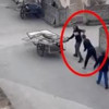 Görüntülerde, elinde sopa olan şahsın, eskiciye vurması ve eskicinin kendini koruyarak olay yerinden uzaklaşması yer alıyor.