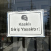 Bina girişine asılan ‘kasklı giriş yasak’ uyarısını gören vatandaşlar hayrete düşerken, motokuryelerin bu duruma nasıl tepki vereceği merak konusu oldu.