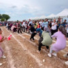 Antalya'nın Serik ilçesinde düzenlenen Eskiyörük 3. Uçurtma Şenliği'nde anneler, halat çekme yarışında mücadele etti ve çocukları da onları tezahüratlarla destekledi.