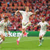 Maçın 26. dakikasında sol kanattan içeriye giren Kasper Dolberg, düzgün bir vuruşla topu ağlara gönderdi ve takımını 1-0 öne geçirdi. Galler’de Connor Roberts, 40. dakikada topu oyunda tutmak isterken sağ bacağından sakatlandı.