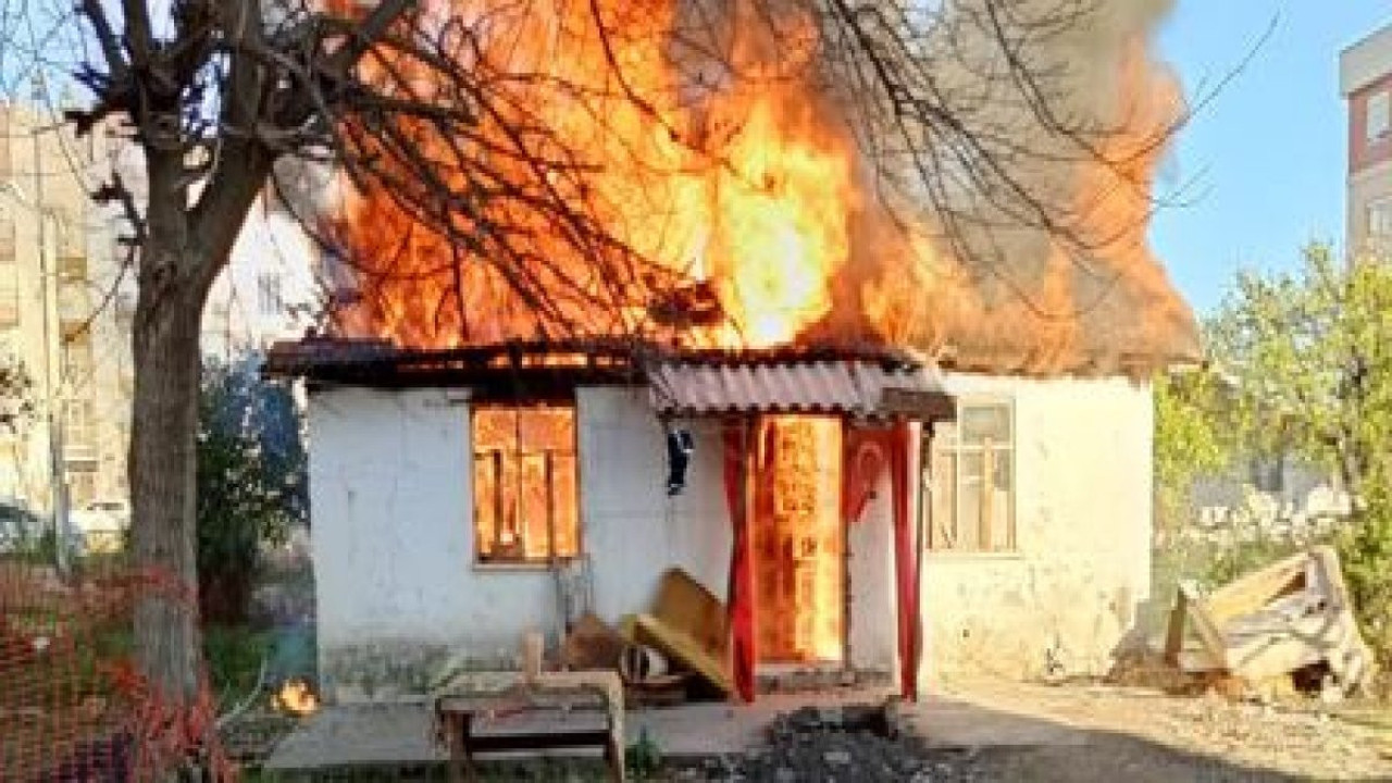 Yangına ilişkin vatandaşların cep telefonuyla kaydettiği görüntülerde, gecekondunun alev topuna döndüğü ve tamamen yanarak kullanılmaz hale geldiği görüldü.