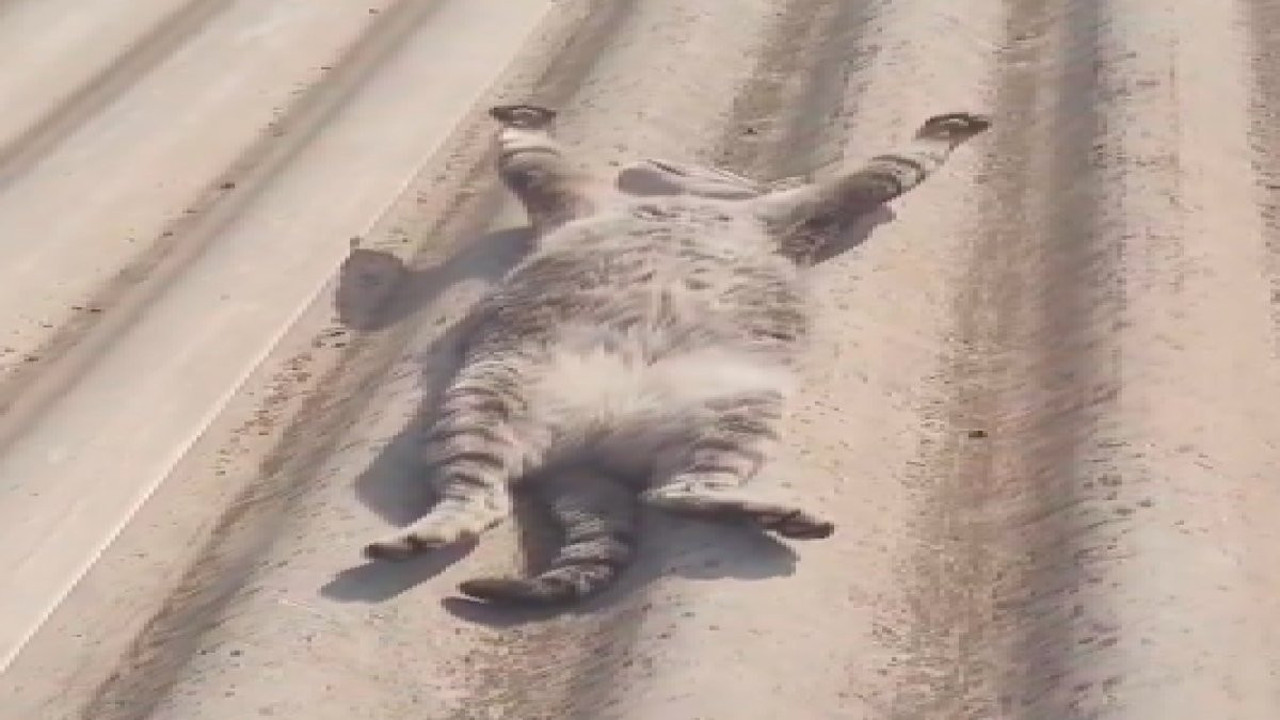 Bir hayvansever, evde olmadığını fark ettiği kedisi Sammy'i çatıda güneşlenirken bulduğunda eğlenceli anlar yaşandı. Olukların arasında sırt üstü uzanan ve keyifli bir şekilde güneşin tadını çıkaran Sammy, sahibinin gözlerine inanamayacağı bir manzara oluşturdu. Sahibi, kedisinin beklenmedik güneşlenme tercihi karşısında kahkahalara boğuldu ve bu komik anları hemen kaydetti. Sosyal medyada hızla yayılan bu video, hayvanseverler arasında büyük ilgi uyandırdı ve yorum yağmuruna tutuldu.