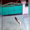 Ağzıyla köpeği yakalayan leopar evin çitlerinden atlayarak gözden kayboldu.